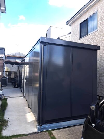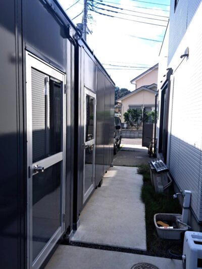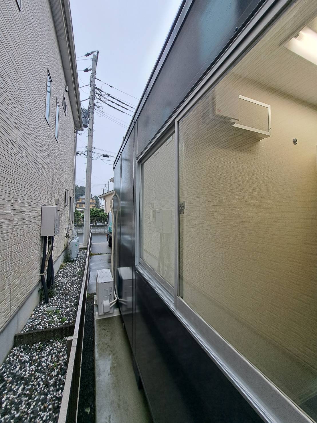 住宅横のユニットハウス2台に製作設置をさせて頂きました。